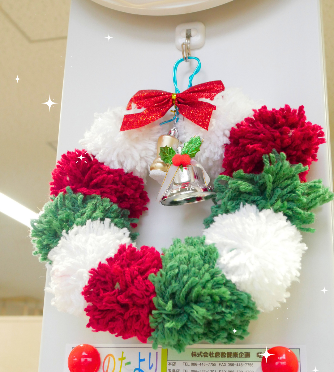 多くの方に見ていただけるように、1階受付と4階の病棟に飾らせていただきました!現在は年も明けて病院内で保管しておりますが、とても素敵なクリスマス飾りなので、1年後のクリスマスにも飾らせていただきたいと思います♪